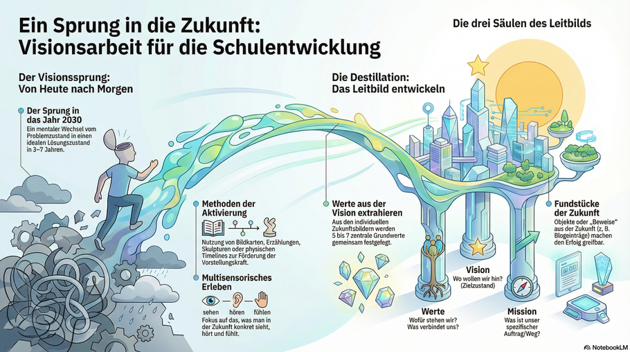 "Wer Visionen hat soll zum Arzt gehen!" Dieses Zitat von Altkanzler Helmut Schmidt ist eine allseits bekannte Abwehrreaktionen, wenn es in Schulentwicklungsprozessen um Visionen und Visionsarbeit geht. Helge und David diskutieren, ob das Zitat in Zeiten grundlegender Transformation von Schule nicht viel mehr umgedreht werden müsste: "Wer keine Visionen hat, sollte zum Arzt gehen!". Die Episode diskutiert ausführlich die Bedeutung von Visionen für Entwicklungsprozesse, damit Schulen eine klare Vorstellung davon haben, wo sie hin möchten, um nicht in der Routine des Alltags festzustecken. Visionsarbeit ist weit mehr ist als nur ein theoretisches Konstrukt – sie ist eine notwendige Grundlage für Schulentwicklung, die Mut und Kreativität erfordert.